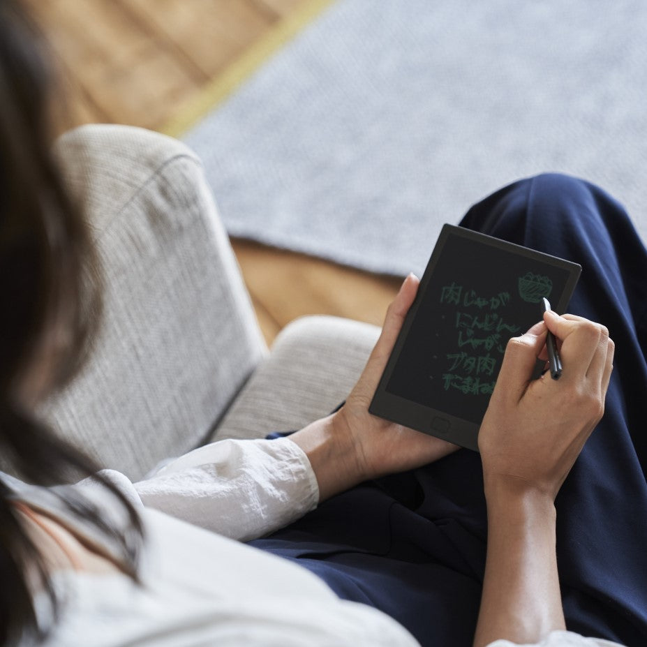 電子メモパッド『Boogie Board』はそんなシーンに最適。ワンタッチでスクリーンを一新。書いた後は、スマホにきれいに保存できます。