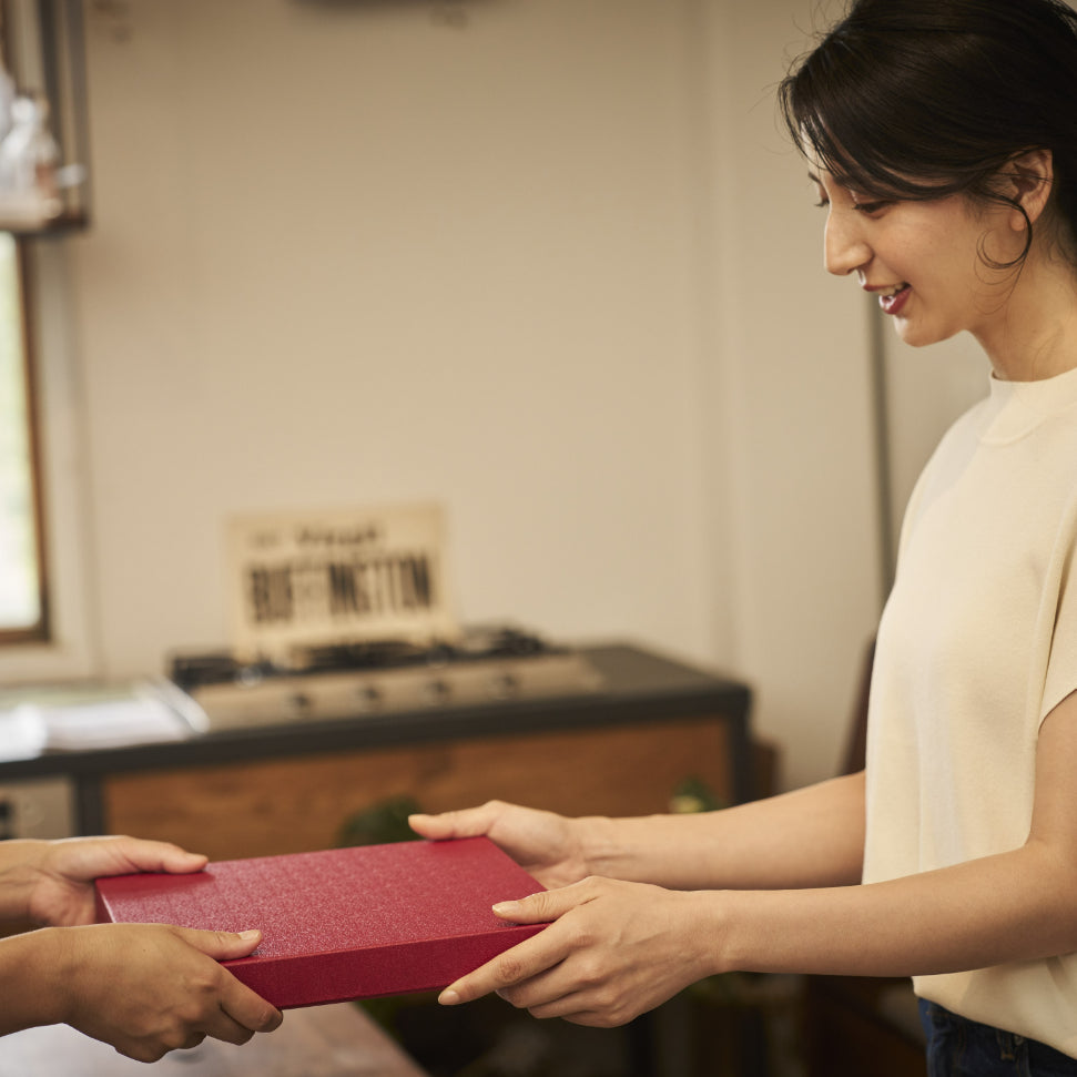 高級感のあるワインレッドの箱は、大切な方へのプレゼントに最適。