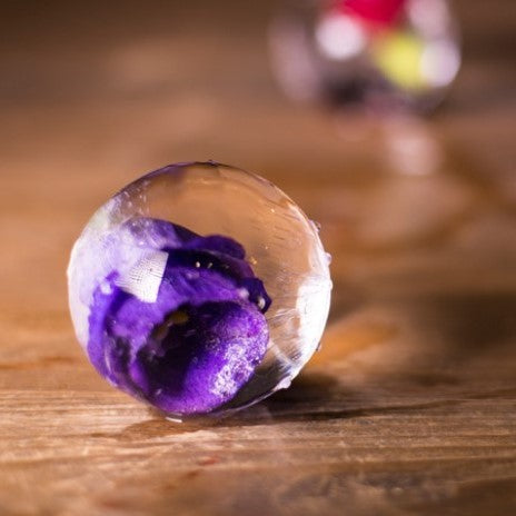 作り方はドーム部分に花やミントの葉を入れるだけ。アイスボールは装飾アイテムとしても優秀なんです。