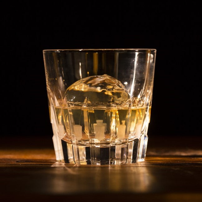 それは「丸い形の透明な氷」。「丸い形」の氷は表面積が小さいため溶けるスピードを遅らせます。「透明」な氷は溶け出す水に不純物がなく、ウイスキーへの雑味を避けます。
