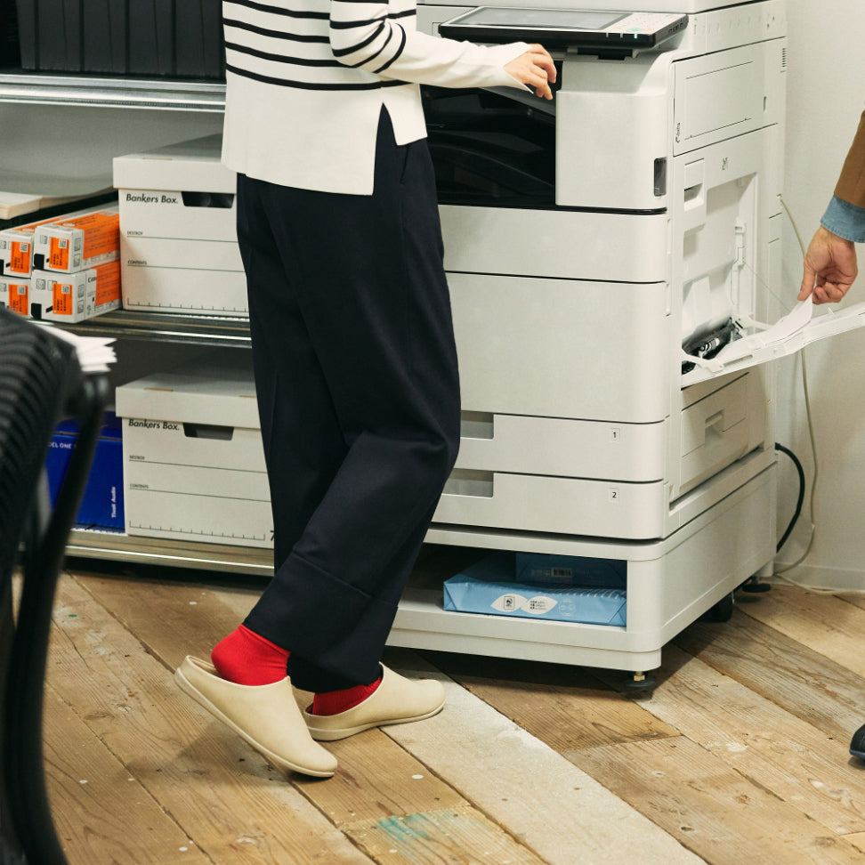 オフィスフロアを颯爽と歩く様子は、革靴さながら。