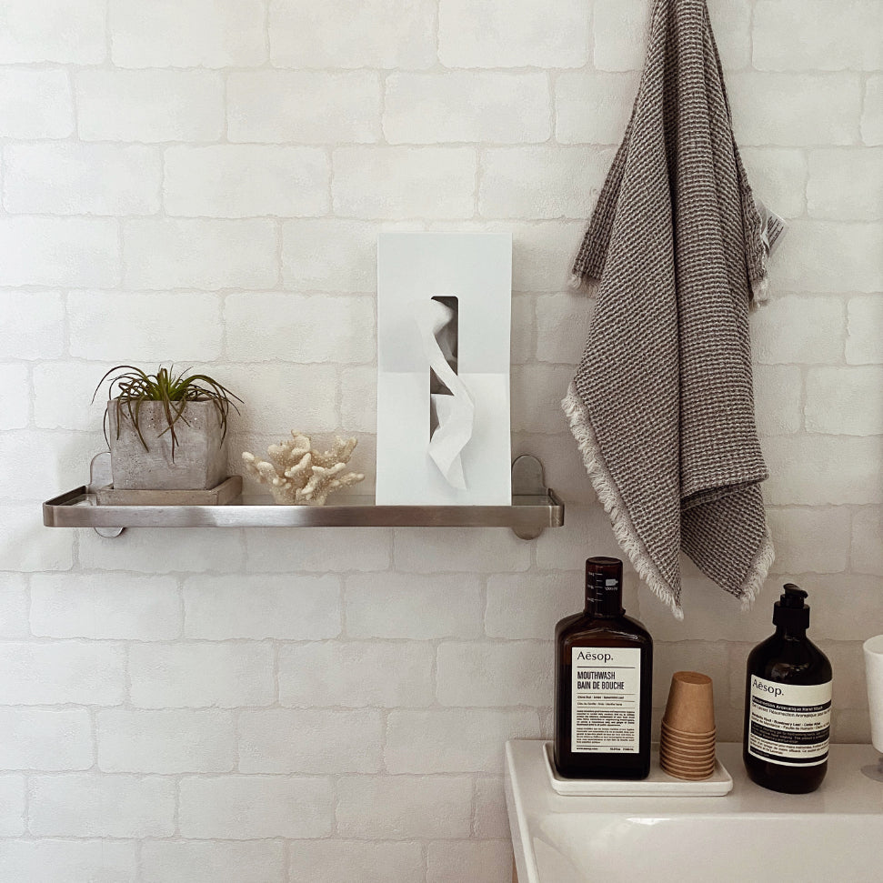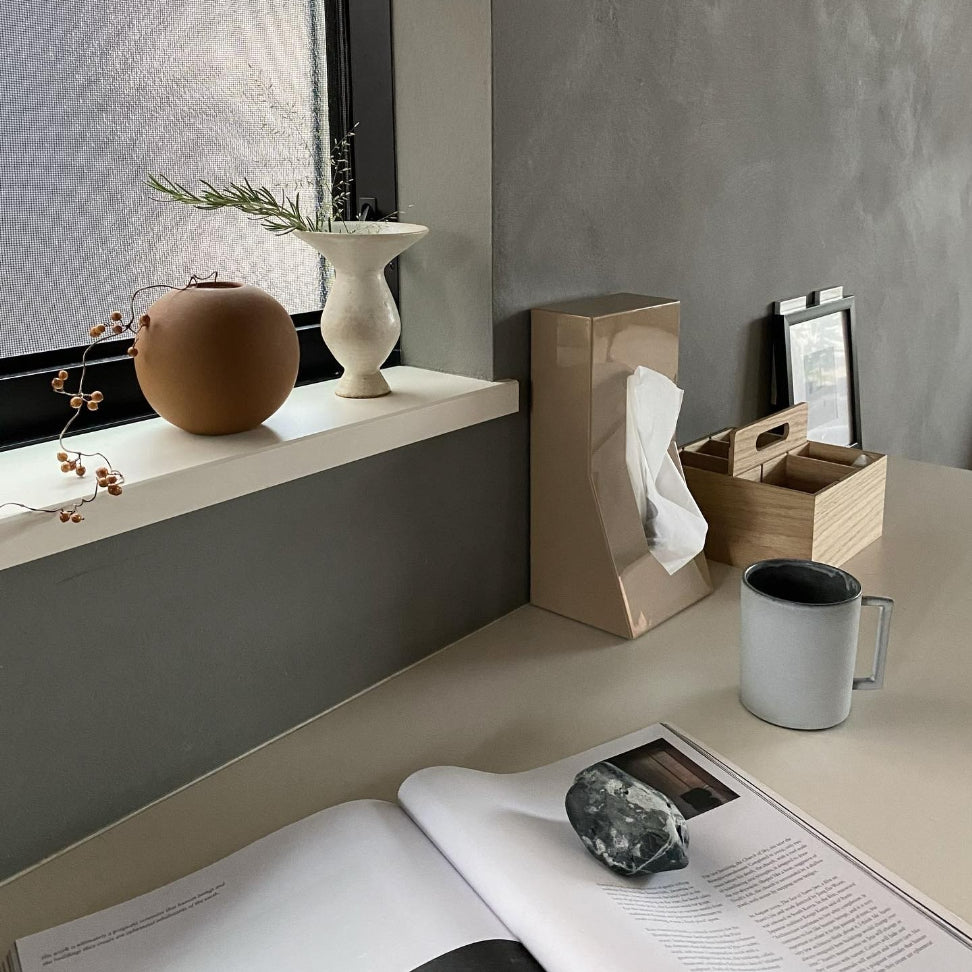つなぎ目がない点や装飾的な要素のない端正なデザインは、元のティッシュ箱の生活感を打ち消すのに十分です。